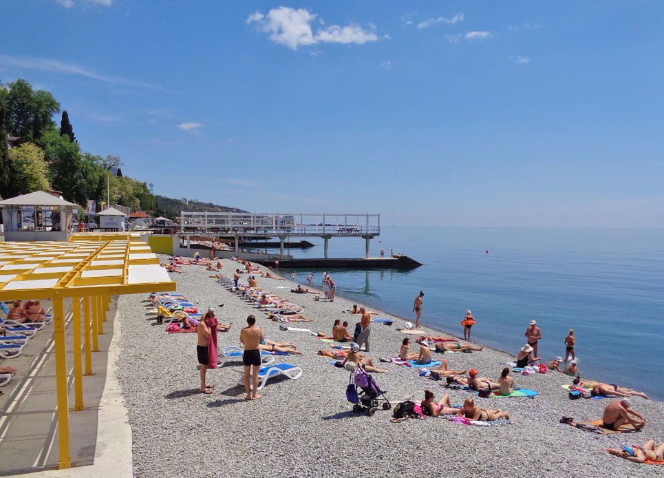 • оборудован душевыми, кабинками для переодевания, кафе, лежаками, навесами, спасательным постом, туалетом
